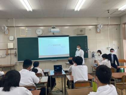 本日の5、6時間目は生野区役所地域まちづくり課の方と株式会社ダイヤの方が来校され、「食べたら幸せになるパンを作る」をテーマにパンの開発に向けての基礎授業をしていただきました。