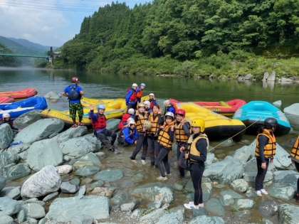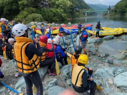 3年修学旅行 ラフティング準備中