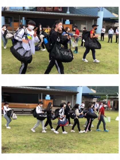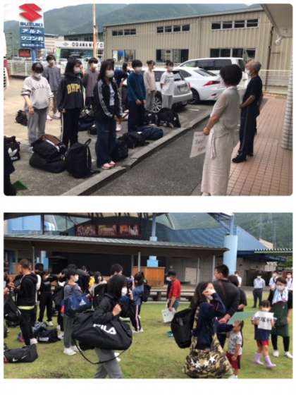 昼食後、全体写真を撮り、諸注意のあと、各民泊先に旅立ちました。空の里班とオアシス班の様子です。