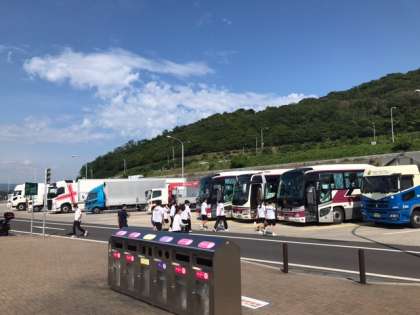 予定どおり、15:20に室津PAに到着、トイレ休憩です。次は、桃谷中学校です。
