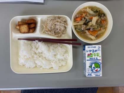 ごはん 牛乳 中華煮 あつあげのピリ辛じょうゆかけ もやしの中華あえ