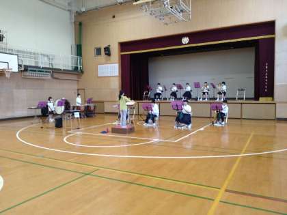 今日は体育館で練習を行い、先生方の前で試演会をさせていただきました。生徒たちはかなり緊張していたようです。
