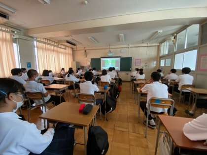 5時間目に体育館で、特攻隊と知覧基地についての説明を聞き、6時間目は教室でビデオを鑑賞しました。