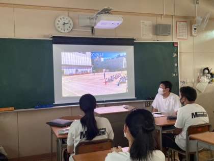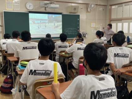 レース後は教室に戻り、各クラスでレースの動画を見ながら作戦会議を行いました。