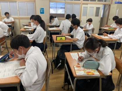 本日の1時間目は、中間テストに向けての目標設定とクックハウスさんで販売されるパンのポップ作りの作業を行いました。