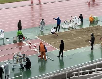 先月末の秋季総体で上位成績を収めた選手が参加する大阪中学選手権(府大会)がこの2日間で行われました。2年女子100mのレースでは他の学校の選手2名がフライングで失格になるハプニング。緊張も相まってスタートで出遅れてしまい、ベストタイムは更新ならず。また、1年女子走幅跳では高記録が出て決勝に進出しました。午後から雨が降り、肌寒い中での競技となりましたが、府下全域の強い選手たちと競うことで新たな目標ができたことでしょう。次は駅伝予選に向けてがんばりましょう!