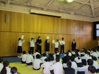 今回の学年集会では、先日行った球技大会の表彰を行いました。球技大会のような楽しい取り組みを今後も行っていけるように、日頃の学習や学校生活もしっかり頑張りましょう!
