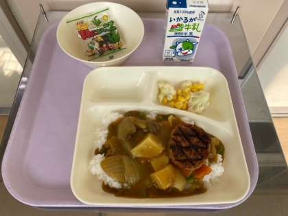 ごはん 牛乳 ハンバーグカレーライス カリフラワーのピクルス 豆こんぶ