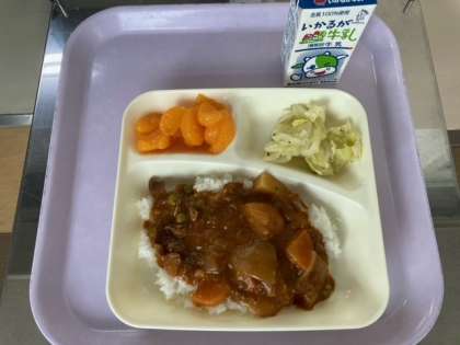 ごはん  牛乳  ハヤシライス  キャベツのバジル風味サラダ  みかん