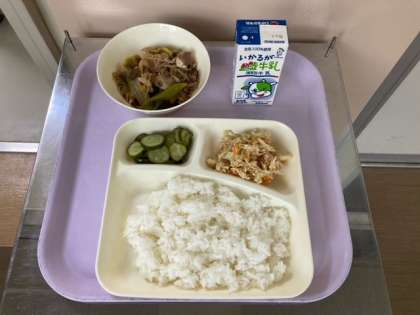ごはん  牛乳  すき焼き煮  もやしとささみのいためもの  きゅうりのゆず風味