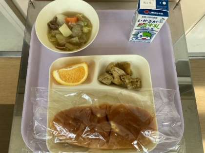 パン 牛乳 鶏肉のカレー風味焼き 洋風煮 はっさく