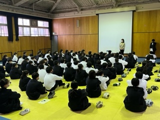 トール先生のお話をしっかり聞いていました。メリハリのある生活で、かっこいい中学生になってくださいね。
