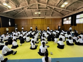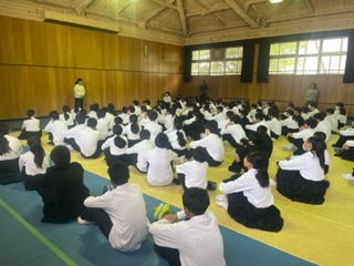 学年集会がありました。テスト明けでしたが、ひとりひとり真剣に話を聞くことができていましたね。今日は松久保先生のお話、「集団の中で生活すること」という内容でした。1泊移住も近づいてきています。普段の生活から周りや集団を意識できるよう、変えていきましょう。