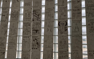 学年全員が考えた校外学習のしおりの表紙デザインを掲示しました。月曜日には投票を行う予定です。誰のデザインに決まるのか楽しみです!