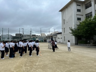 校長先生から3年生の修学旅行で得た素敵な言葉を紹介していただきました。アスレチック体験で、スタッフの方から「一歩踏み出す勇気を持とう」とお話がありました。