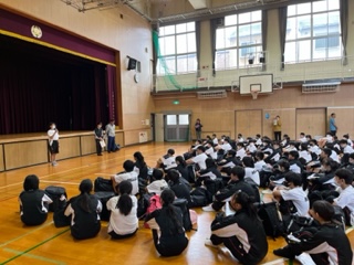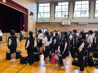 いよいよ1泊移住が始まりました。出発式では生徒代表として4組の委員長さんが話をしてくれました。学年目標の「自分で考えて行動する」を意識して、充実した2日間にできると良いですね。