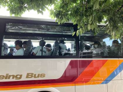 バスが出発し、三号車ではDVD上映会が始まりました。