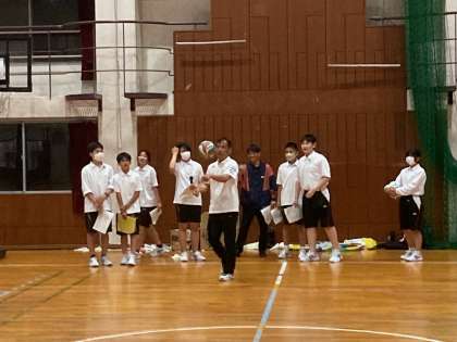 三種目めはバレーボールリフティングです。デモンストレーションは矢田先生です。