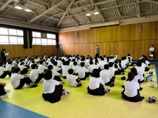 今日は学年集会がありました。今週は西田先生のお話です。「継続して努力する」ことに関するお話でした。結果がどうであれ、「よく頑張った!」と思えるような過程があればよいですね。