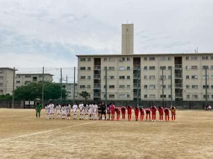 1試合目は天下茶屋、前線からプレッシャーをかけて相手の繋いでくるボールを回収しながら攻撃することができました。ただし、カウンターから何度かピンチを迎えます。2点取った後に1点取り返され難しい試合になりましたがその後追加点を取り引き離すことができたのは良かったと思います。