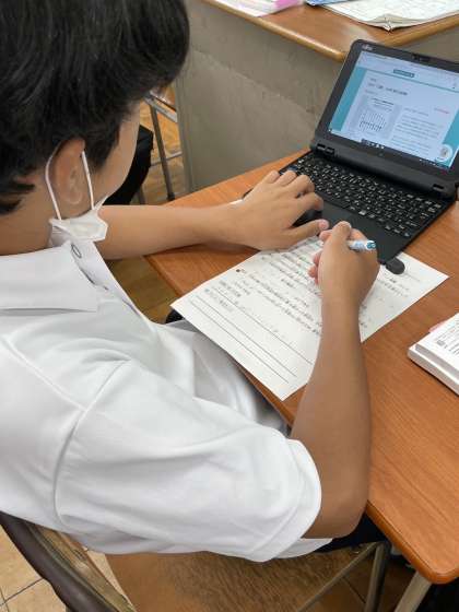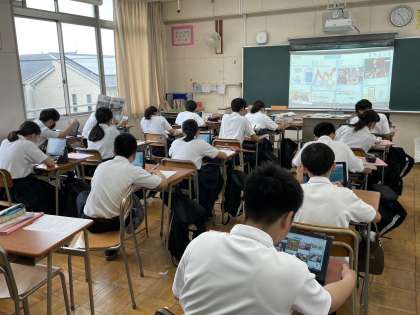 朝日デジタル新聞の記事を読んでワークシートをやっています。思っていたより興味深く見ていました。