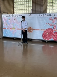 今日の校長先生からのお話は、期末テスト反省をしっかりして、次に繋げようということと、今日、明日の2日間で訪問される甘泉外国語中学との交流の歴史についてでした。明日は、甘泉外国語中学の方々を歓迎する会が開かれます。みんなで盛り上げましょう。