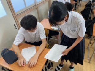 今日の朝学活の様子です。甘泉外国語中学からの留学生と交流するため、中国語での挨拶や自己紹介をタブレットの翻訳機能を使って調べました。なかなか無い機会です!積極的に交流していきましょう!