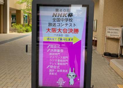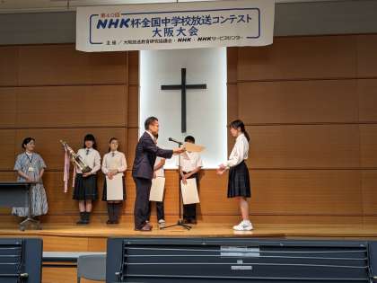 7/2、7/9と二週間にわたって、NHK杯全国中学校放送コンテスト大阪大会予選、決勝がありました。放送部では、朗読部門、アナウンス部門、テレビ番組部門に出場し、テレビ番組部門で大阪大会優秀賞を獲得、2年連続全国大会出場が決定しました。他の2部門は残念な結果となりましたが、それぞれの部門の取り組み方などを教えていただき、今後につながる良い経験となりました。今後も意識を高めて取り組んでいきましょう。