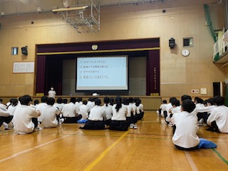 4時間目に体育館にて夏休み前の学年集会を行いました。