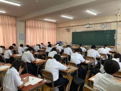1年生は5時間目に夏休みの課題テストを行いました。夏休みの学習は活かせたでしょうか?できなかったところはしっかり見直しをして2学期の勉強に繋げられるものにしましょう。