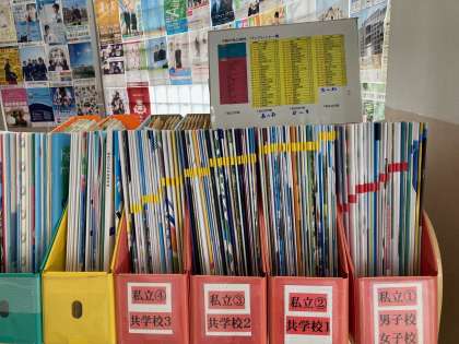 廊下に置いている進路パンフレットの大阪の私立高校を令和6年度入試分に入れ替えました。これからの進路選択に役立ててくださいね。