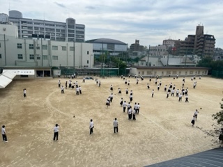 今日もよく晴れていたので、昼休み外に出てボール遊びをする生徒がたくさんいました。元気な笑い声が校庭に響いています。