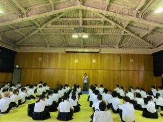 山川先生から、「努力」についてのお話を聞きました。大きさや形が人それぞれ違う、「努力の壺」をいっぱいにできるように、何事も頑張りましょう!