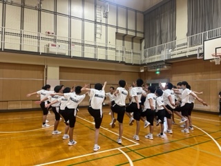 5時間目総合の時間は、4クラス合同で体育大会の行進の練習をしました。