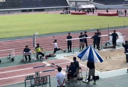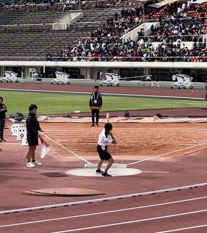 土日は地区予選で上位に残った選手が参加できる府の大会「大阪中学総体」が万博競技場であり、女子2人が走り幅跳びと砲丸投げに出場しました。