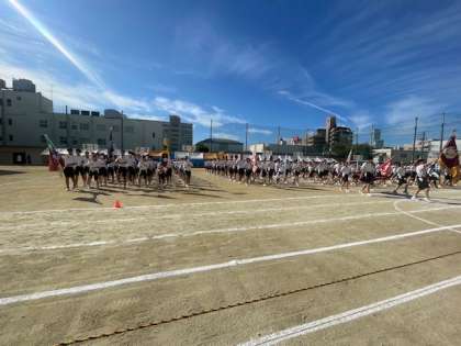 体育大会が始まりました。入場行進の様子です。全クラス、とても元気な行進でした。