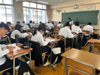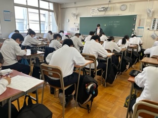 今日の朝学活では、文化発表会で歌う曲の歌詞テストがありました。しっかり覚えて堂々と歌えると良いですね。