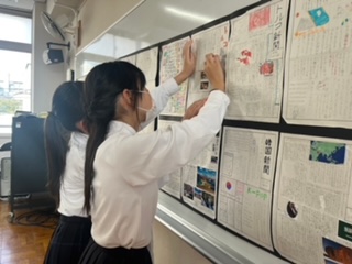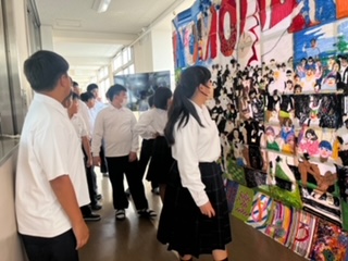先輩の作品を見たり、自分たちの作品を褒め合ったり、1年生みんな大興奮の楽しい時間でした。
