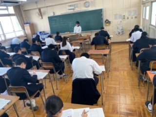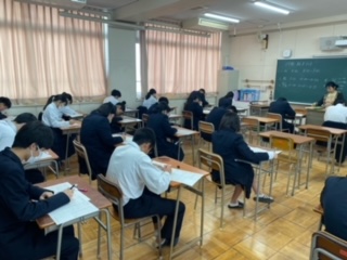 今日から2学期期末テストが始まりました。今日は社会、数学、技術家庭科のテストです。実力を発揮するため朝から頑張って勉強していました。来年の受験に向けてステップアップしていけるテストにしていきましょう。