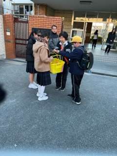 昨日に引き続き、今朝は勝山小学校に行ってきました。正門の前では、小学生のみなさんは元気に挨拶をしてくれました。今日もたくさんの切手やハガキが集まりました。ご協力ありがとうございました。
