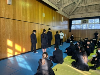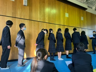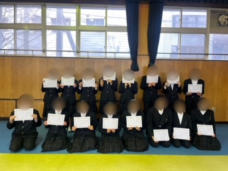 今日朝の学年集会で、百人一首大会の表彰を行いました。最優秀賞は2組、優秀賞は4組でした。各クラス2人ずつの精鋭部と一般の部の上位10名が表彰されました。
