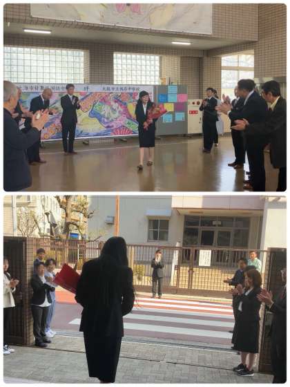 旧勝山中学校で3年間、新校桃谷中学校となって5年間、校長として務めていただいた原口貴美子先生が本校をさられました。