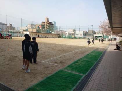 朝のグラウンドでは、陸上部の皆さんが練習中。トレーニング用のミニハードルを並べて、俊敏性や瞬発力を磨きます。皆様、自己ベスト更新をめざして頑張ってくださいね。