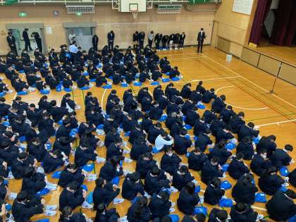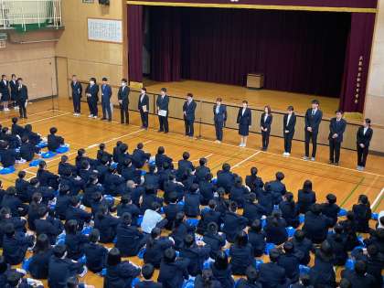 一学期始業式が始まりました。まずは新しく着任した先生の紹介です。