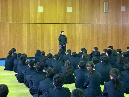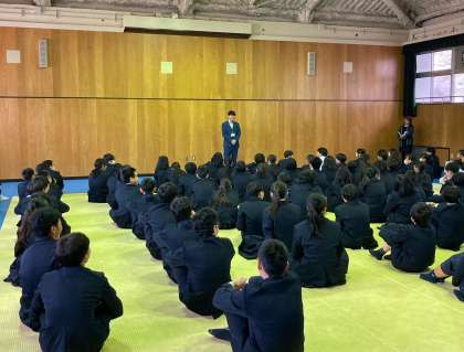 2限目の学年集会では、学年所属の先生の紹介と、新しく来られた先生からの挨拶をしていただきました。松本先生からはすきなことや趣味についてお話しくださいました。南口先生からはみんなに身につけて欲しいこととして「聞く」と「聴く」の違いを説明しながらお話しくださいました。岩見先生からは、みんなとたくさんお話ししたいというお話しをしていただきました。これからよろしくお願いします。