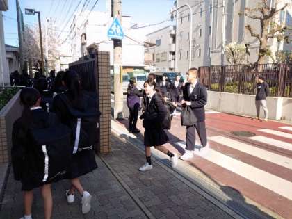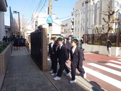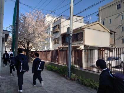 ぬけるような青空が広がるものの、少し肌寒い花冷えの朝。今朝も皆さん元気に登校してきました。今日の午後は各クラスの集合写真を撮影します。快晴の中、新しい仲間と笑顔いっぱいで写りましょう。