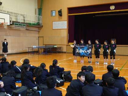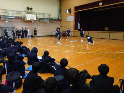 実際の練習風景を演じるクラブが多いようです。先輩方はちょっぴり緊張しながらも、好プレーを披露してくれました。普段の練習の賜物です。