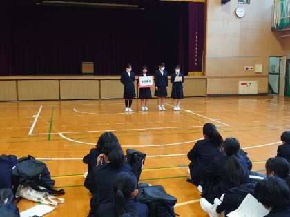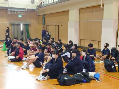 部活動紹介が行われている体育館の後方には、2、3年の先輩方が仲間のパフォーマンスを温かく見守っています。後輩がたくさん入ってくると良いですね。部活動編成は4月22日(月)を予定しています。