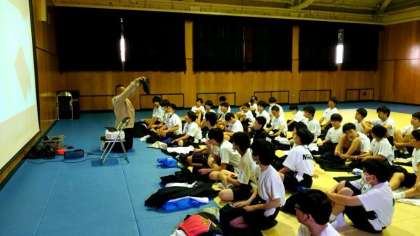1年生男子体育の授業が始まりました。まずは先生から体操服の更衣についてお話がありました。着替えた際に学生服を脱ぎ散らかすと、ズボンの折り目が台無しになりかねません。きちんと丁寧に折りたたむ習慣を身につけてくださいね。