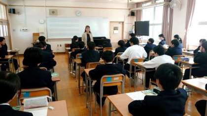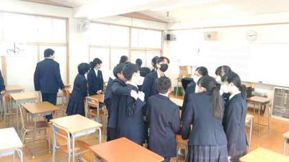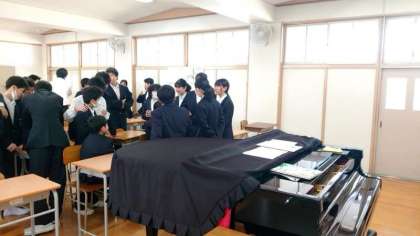 1年生音楽の授業で「校歌」を教わります。中学校の校歌を習う前に、まずは校歌のステキな点を、小学校毎に分かれて話し合います。これまで歌ってきた各小学校の校歌。歌詞やメロディーなど「ここがステキ」というところを発表してくださいね。